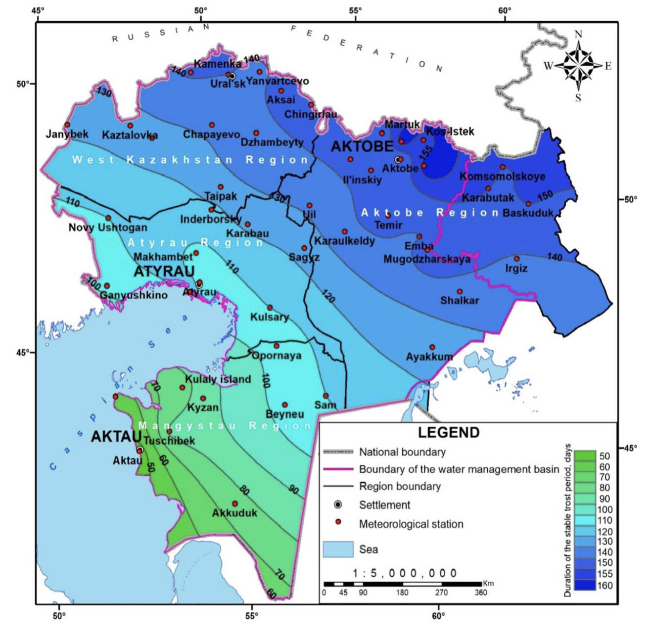 The analysis covers three future time horizons: 2040 (2031–2050), 2060 (2051–2070), and 2080 (2071–2090), under two greenhouse gas concentration scenarios: SSP3-7.0 (moderately high emissions) and SSP5-8.5 (high emissions). The results reveal a pronounced seasonal contrast in the projected hydrological response. During the winter low-water period, a steady increase in minimal runoff is projected for all rivers, with the most significant changes observed for the Or, Zhem, Temir, and Shagan rivers. This increase is primarily driven by higher winter precipitation, increased thaw frequency, and enhanced infiltration recharge. Conversely, despite modest increases in summer–autumn precipitation, minimal runoff during the summer–autumn low-water period is projected to decline significantly, particularly in the southern basins, due to elevated evapotranspiration rates and soil moisture deficits associated with rising air temperatures.