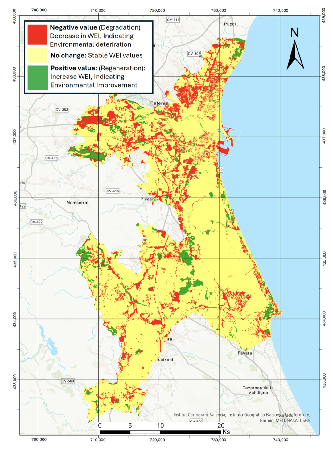 The study demonstrates the usefulness of combining CORINE Land Cover and World Settlement Footprint satellite data to achieve high-resolution environmental assessments. The authors also underline the potential of the WEI as a decision-support tool for sustainable land management in Mediterranean metropolitan regions facing high anthropogenic pressure.