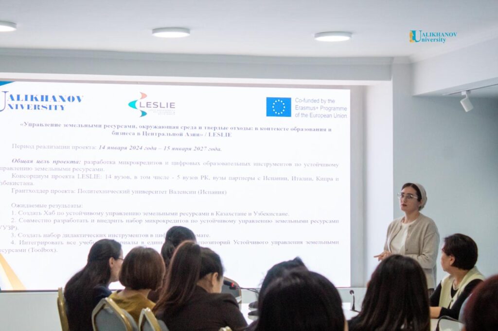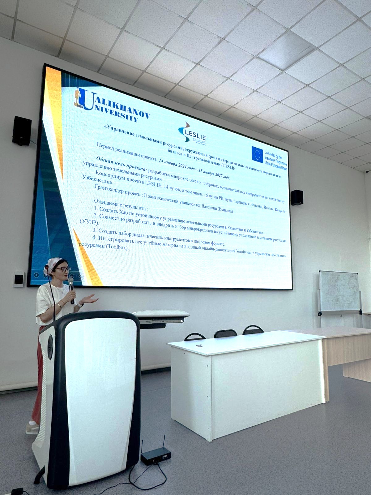 During the session, participants shared experiences and best practices in managing and implementing international projects, highlighting the benefits of interdisciplinary collaboration and capacity building. The LESLIE representatives presented the project’s objectives and key achievements, particularly its efforts to develop micro-credentials and digital learning tools in Sustainable Land Management (SLM) across Central Asia.