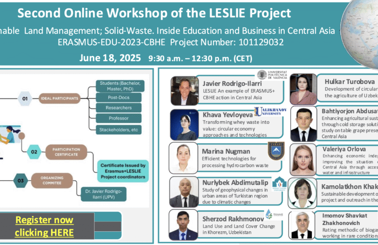 08 Jun, 2025 Climate Change, Economy, Education, Environment, Hydrology, Land Management, Microcredentials, Solid Waste Leslie’s Second Online Workshop – 18 June 2025, 09:30h CET
